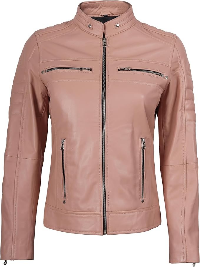• Comfort & Durability: Our pink leather jacket for women is Designed for comfort with a smooth polyester lining and a sturdy leather shell that holds its shape over time.