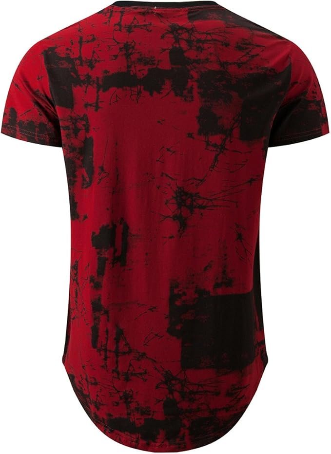 Hipster Hip Hop Ripped Round Hemline Pattern Print T Shirt for Mens