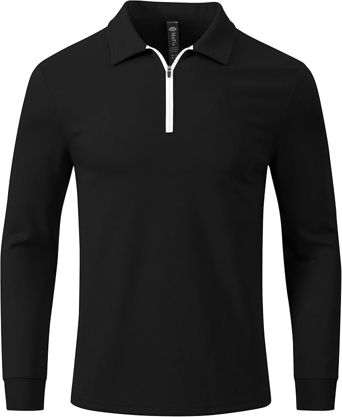 Features: Slim fit, elastic waistband, half-zip pullover top.