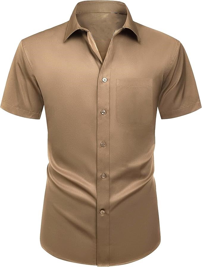 Mens Short Sleeve Dress Shirts Wrinkle Free Solid Casual Button Down Shirts with Pocket