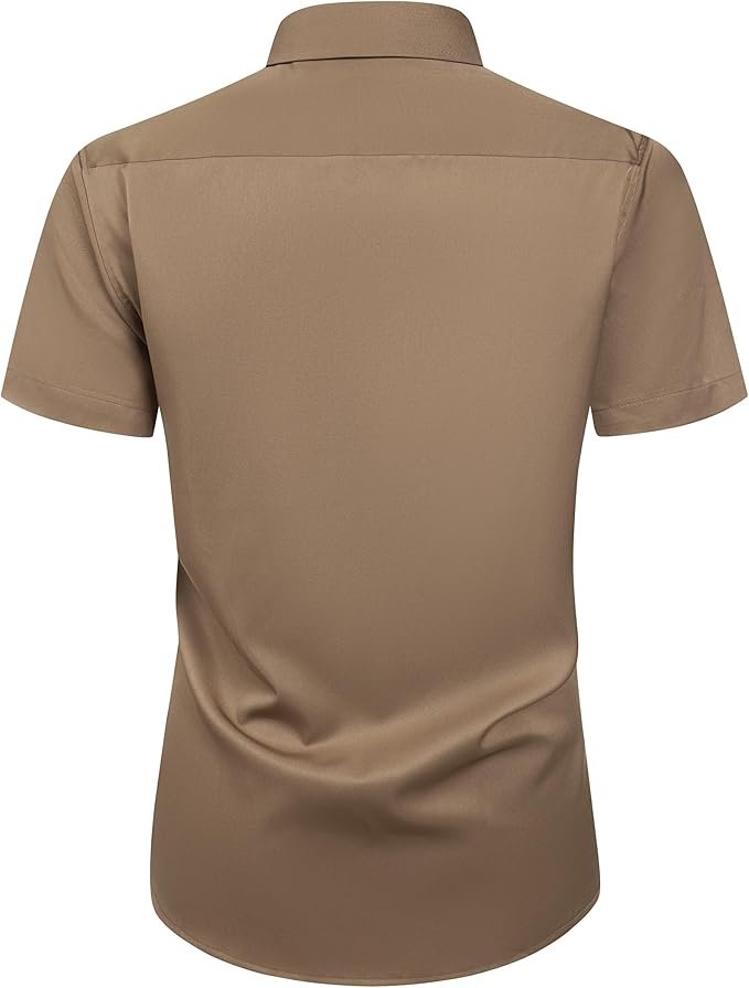 • High-quality Fabric: 62% cotton, 35% polyester, and 3% spandex, this short sleeve shirt offers exceptional softness and all-day breathability. Ideal for summer heat, vacations, and warm weather commutes, the lightweight fabric moves with you during travel or daily activities while resisting wrinkles and retaining its shape